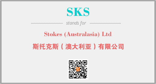 上述内容是“Stokes (Australasia) Ltd”作为“SKS”的缩写,解释为“斯托克斯(澳大利亚)有限公司”时的信息,以及英文缩略词SKS所代表的英文单词,其对应的中文拼音、详细解释以及在英文中的流行度和相关分类、应用领域及应用示例等。