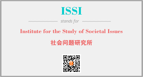 上述内容是“Institute for the Study of Societal Issues”作为“ISSI”的缩写,解释为“社会问题研究所”时的信息,以及英文缩略词ISSI所代表的英文单词,其对应的中文拼音、详细解释以及在英文中的流行度和相关分类、应用领域及应用示例等。