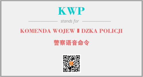 英文缩略词“KWP”经常作为“KOMENDA WOJEWÓDZKA POLICJI”的英文缩写来使用,中文表示:“警察语音命令”。本文将详细介绍英文缩写词KWP所代表英文单词,其对应的中文拼音、详细解释以及在英语中的流行度。此外,还有关于缩略词KWP的分类、应用领域及相关应用示例等。