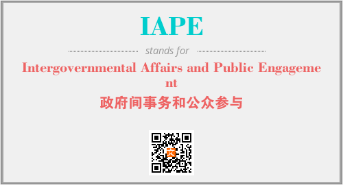 上述内容是“Intergovernmental Affairs and Public Engagement”作为“IAPE”的缩写,解释为“政府间事务和公众参与”时的信息,以及英文缩略词IAPE所代表的英文单词,其对应的中文拼音、详细解释以及在英文中的流行度和相关分类、应用领域及应用示例等。