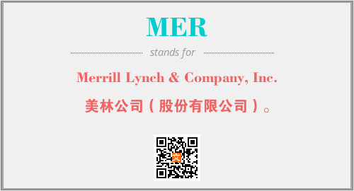 英文缩略词“MER”经常作为“Merrill Lynch & Company, Inc.”的英文缩写来使用,中文表示:“美林公司(股份有限公司)。”。本文将详细介绍英文缩写词MER所代表英文单词,其对应的中文拼音、详细解释以及在英语中的流行度。此外,还有关于缩略词MER的分类、应用领域及相关应用示例等。