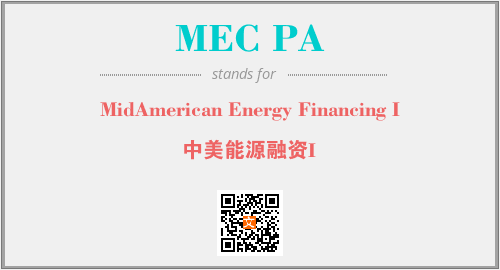 上述内容是“MidAmerican Energy Financing I”作为“MEC PA”的缩写,解释为“中美能源融资I”时的信息,以及英文缩略词MEC PA所代表的英文单词,其对应的中文拼音、详细解释以及在英文中的流行度和相关分类、应用领域及应用示例等。