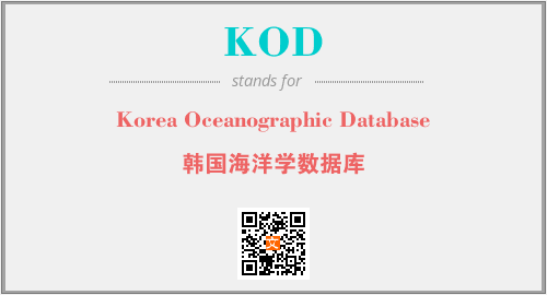 上述内容是“Korea Oceanographic Database”作为“KOD”的缩写,解释为“韩国海洋学数据库”时的信息,以及英文缩略词KOD所代表的英文单词,其对应的中文拼音、详细解释以及在英文中的流行度和相关分类、应用领域及应用示例等。