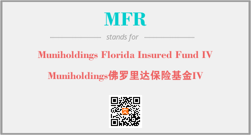 上述内容是“Muniholdings Florida Insured Fund IV”作为“MFR”的缩写,解释为“Muniholdings佛罗里达保险基金IV”时的信息,以及英文缩略词MFR所代表的英文单词,其对应的中文拼音、详细解释以及在英文中的流行度和相关分类、应用领域及应用示例等。