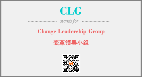 上述内容是“Change Leadership Group”作为“CLG”的缩写,解释为“变革领导小组”时的信息,以及英文缩略词CLG所代表的英文单词,其对应的中文拼音、详细解释以及在英文中的流行度和相关分类、应用领域及应用示例等。