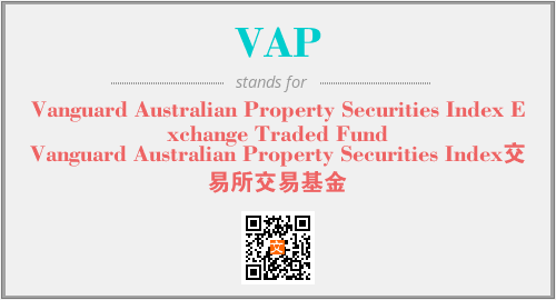 英文缩略词“VAP”经常作为“Vanguard Australian Property Securities Index Exchange Traded Fund”的英文缩写来使用,中文表示:“Vanguard Australian Property Securities Index交易所交易基金”。本文将详细介绍英文缩写词VAP所代表英文单词,其对应的中文拼音、详细解释以及在英语中的流行度。此外,还有关于缩略词VAP的分类、应用领域及相关应用示例等。