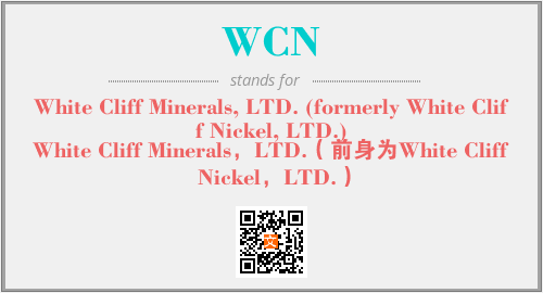 上述内容是“White Cliff Minerals, LTD. (formerly White Cliff Nickel, LTD.)”作为“WCN”的缩写,解释为“White Cliff Minerals,LTD.(前身为White Cliff Nickel,LTD.)”时的信息,以及英文缩略词WCN所代表的英文单词,其对应的中文拼音、详细解释以及在英文中的流行度和相关分类、应用领域及应用示例等。