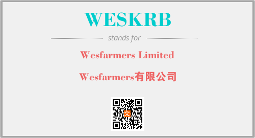 上述内容是“Wesfarmers Limited”作为“WESKRB”的缩写,解释为“Wesfarmers有限公司”时的信息,以及英文缩略词WESKRB所代表的英文单词,其对应的中文拼音、详细解释以及在英文中的流行度和相关分类、应用领域及应用示例等。