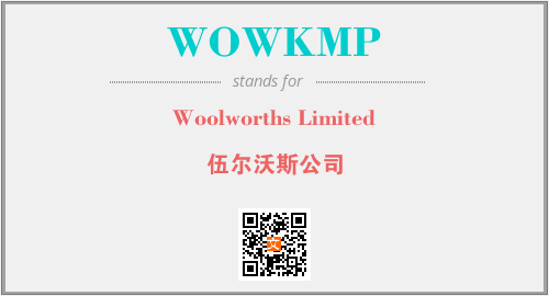 上述内容是“Woolworths Limited”作为“WOWKMP”的缩写,解释为“伍尔沃斯公司”时的信息,以及英文缩略词WOWKMP所代表的英文单词,其对应的中文拼音、详细解释以及在英文中的流行度和相关分类、应用领域及应用示例等。