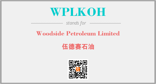 上述内容是“Woodside Petroleum Limited”作为“WPLKOH”的缩写,解释为“伍德赛石油”时的信息,以及英文缩略词WPLKOH所代表的英文单词,其对应的中文拼音、详细解释以及在英文中的流行度和相关分类、应用领域及应用示例等。