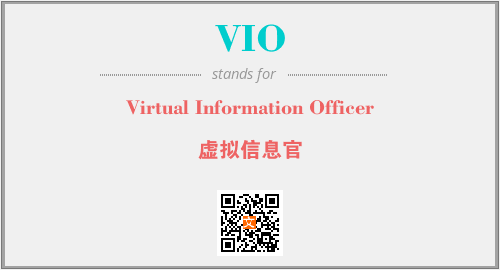 英文缩略词“VIO”经常作为“Virtual Information Officer”的英文缩写来使用,中文表示:“虚拟信息官”。本文将详细介绍英文缩写词VIO所代表英文单词,其对应的中文拼音、详细解释以及在英语中的流行度。此外,还有关于缩略词VIO的分类、应用领域及相关应用示例等。