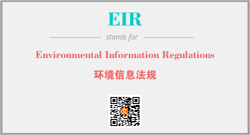 上述内容是“Environmental Information Regulations”作为“EIR”的缩写,解释为“环境信息法规”时的信息,以及英文缩略词EIR所代表的英文单词,其对应的中文拼音、详细解释以及在英文中的流行度和相关分类、应用领域及应用示例等。
