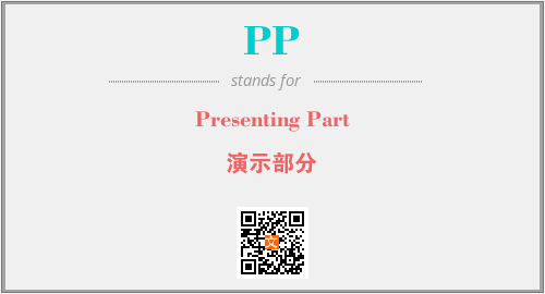 英文缩略词“PP”经常作为“Presenting Part”的英文缩写来使用,中文表示:“演示部分”。本文将详细介绍英文缩写词PP所代表英文单词,其对应的中文拼音、详细解释以及在英语中的流行度。此外,还有关于缩略词PP的分类、应用领域及相关应用示例等。