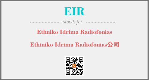 上述内容是“Ethniko Idrima Radiofonias”作为“EIR”的缩写,解释为“Ethiniko Idrima Radiofonias公司”时的信息,以及英文缩略词EIR所代表的英文单词,其对应的中文拼音、详细解释以及在英文中的流行度和相关分类、应用领域及应用示例等。