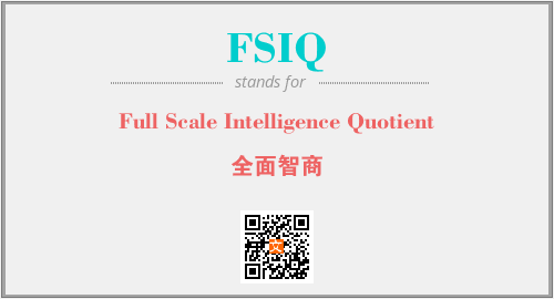 上述内容是“Full Scale Intelligence Quotient”作为“FSIQ”的缩写,解释为“全面智商”时的信息,以及英文缩略词FSIQ所代表的英文单词,其对应的中文拼音、详细解释以及在英文中的流行度和相关分类、应用领域及应用示例等。