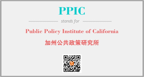 上述内容是“Public Policy Institute of California”作为“PPIC”的缩写,解释为“加州公共政策研究所”时的信息,以及英文缩略词PPIC所代表的英文单词,其对应的中文拼音、详细解释以及在英文中的流行度和相关分类、应用领域及应用示例等。