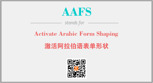 上述内容是“Activate Arabic Form Shaping”作为“AAFS”的缩写,解释为“激活阿拉伯语表单形状”时的信息,以及英文缩略词AAFS所代表的英文单词,其对应的中文拼音、详细解释以及在英文中的流行度和相关分类、应用领域及应用示例等。