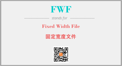 英文缩略词“FWF”经常作为“Fixed Width File”的英文缩写来使用,中文表示:“固定宽度文件”。本文将详细介绍英文缩写词FWF所代表英文单词,其对应的中文拼音、详细解释以及在英语中的流行度。此外,还有关于缩略词FWF的分类、应用领域及相关应用示例等。