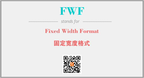 英文缩略词“FWF”经常作为“Fixed Width Format”的英文缩写来使用,中文表示:“固定宽度格式”。本文将详细介绍英文缩写词FWF所代表英文单词,其对应的中文拼音、详细解释以及在英语中的流行度。此外,还有关于缩略词FWF的分类、应用领域及相关应用示例等。