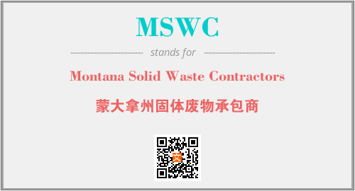 上述内容是“Montana Solid Waste Contractors”作为“MSWC”的缩写,解释为“蒙大拿州固体废物承包商”时的信息,以及英文缩略词MSWC所代表的英文单词,其对应的中文拼音、详细解释以及在英文中的流行度和相关分类、应用领域及应用示例等。