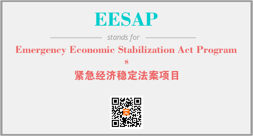 上述内容是“Emergency Economic Stabilization Act Programs”作为“EESAP”的缩写,解释为“紧急经济稳定法案项目”时的信息,以及英文缩略词EESAP所代表的英文单词,其对应的中文拼音、详细解释以及在英文中的流行度和相关分类、应用领域及应用示例等。