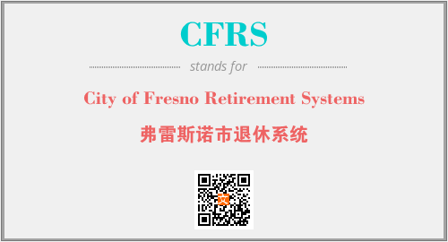 上述内容是“City of Fresno Retirement Systems”作为“CFRS”的缩写,解释为“弗雷斯诺市退休系统”时的信息,以及英文缩略词CFRS所代表的英文单词,其对应的中文拼音、详细解释以及在英文中的流行度和相关分类、应用领域及应用示例等。