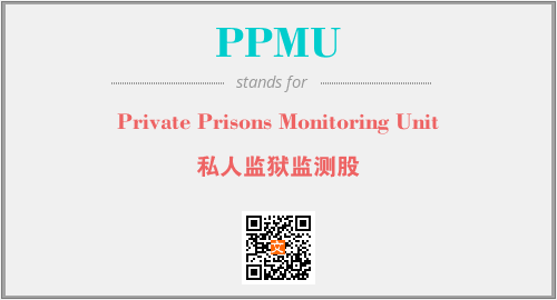 上述内容是“Private Prisons Monitoring Unit”作为“PPMU”的缩写,解释为“私人监狱监测股”时的信息,以及英文缩略词PPMU所代表的英文单词,其对应的中文拼音、详细解释以及在英文中的流行度和相关分类、应用领域及应用示例等。