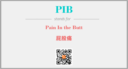 英文缩略词“PIB”经常作为“Pain In the Butt”的英文缩写来使用,中文表示:“屁股痛”。本文将详细介绍英文缩写词PIB所代表英文单词,其对应的中文拼音、详细解释以及在英语中的流行度。此外,还有关于缩略词PIB的分类、应用领域及相关应用示例等。