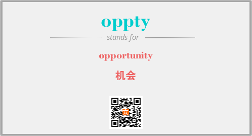 上述内容是“opportunity”作为“oppty”的缩写,解释为“机会”时的信息,以及英文缩略词oppty所代表的英文单词,其对应的中文拼音、详细解释以及在英文中的流行度和相关分类、应用领域及应用示例等。