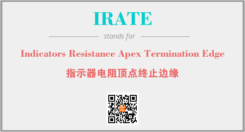 上述内容是“Indicators Resistance Apex Termination Edge”作为“IRATE”的缩写,解释为“指示器电阻顶点终止边缘”时的信息,以及英文缩略词IRATE所代表的英文单词,其对应的中文拼音、详细解释以及在英文中的流行度和相关分类、应用领域及应用示例等。