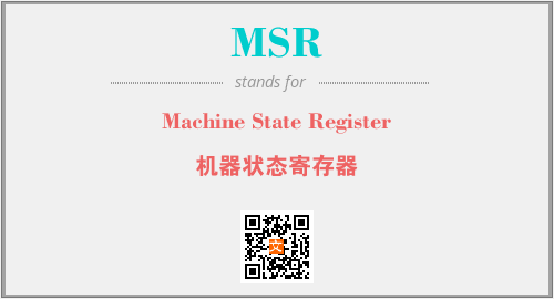 上述内容是“Machine State Register”作为“MSR”的缩写,解释为“机器状态寄存器”时的信息,以及英文缩略词MSR所代表的英文单词,其对应的中文拼音、详细解释以及在英文中的流行度和相关分类、应用领域及应用示例等。