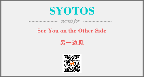 以上为See You on the Other Side英文缩略词SYOTOS的中文解释,以及该英文缩写在英语的流行度、分类和应用领域方面的信息。