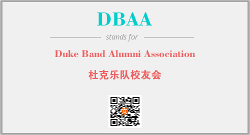 以上为Duke Band Alumni Association英文缩略词DBAA的中文解释,以及该英文缩写在英语的流行度、分类和应用领域方面的信息。