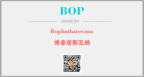 以上为Bophuthatswana英文缩略词BOP的中文解释,以及该英文缩写在英语的流行度、分类和应用领域方面的信息。