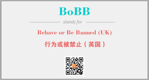 上述内容是“Behave or Be Banned (UK)”作为“BoBB”的缩写,解释为“行为或被禁止(英国)”时的信息,以及英文缩略词BoBB所代表的英文单词,其对应的中文拼音、详细解释以及在英文中的流行度和相关分类、应用领域及应用示例等。