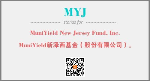 上述内容是“MuniYield New Jersey Fund, Inc.”作为“MYJ”的缩写,解释为“MuniYield新泽西基金(股份有限公司)。”时的信息,以及英文缩略词MYJ所代表的英文单词,其对应的中文拼音、详细解释以及在英文中的流行度和相关分类、应用领域及应用示例等。