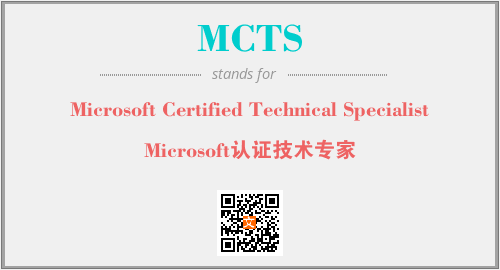 英文缩略词“MCTS”经常作为“Microsoft Certified Technical Specialist”的英文缩写来使用,中文表示:“Microsoft认证技术专家”。本文将详细介绍英文缩写词MCTS所代表英文单词,其对应的中文拼音、详细解释以及在英语中的流行度。此外,还有关于缩略词MCTS的分类、应用领域及相关应用示例等。