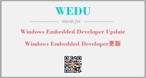 英文缩略词“WEDU”经常作为“Windows Embedded Developer Update”的英文缩写来使用,中文表示:“Windows Embedded Developer更新”。本文将详细介绍英文缩写词WEDU所代表英文单词,其对应的中文拼音、详细解释以及在英语中的流行度。此外,还有关于缩略词WEDU的分类、应用领域及相关应用示例等。