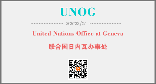 上述内容是“United Nations Office at Geneva”作为“UNOG”的缩写,解释为“联合国日内瓦办事处”时的信息,以及英文缩略词UNOG所代表的英文单词,其对应的中文拼音、详细解释以及在英文中的流行度和相关分类、应用领域及应用示例等。