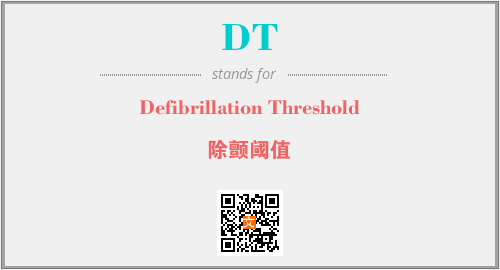 上述内容是“Defibrillation Threshold”作为“DT”的缩写,解释为“除颤阈值”时的信息,以及英文缩略词DT所代表的英文单词,其对应的中文拼音、详细解释以及在英文中的流行度和相关分类、应用领域及应用示例等。