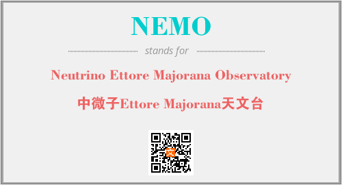上述内容是“Neutrino Ettore Majorana Observatory”作为“NEMO”的缩写,解释为“中微子Ettore Majorana天文台”时的信息,以及英文缩略词NEMO所代表的英文单词,其对应的中文拼音、详细解释以及在英文中的流行度和相关分类、应用领域及应用示例等。