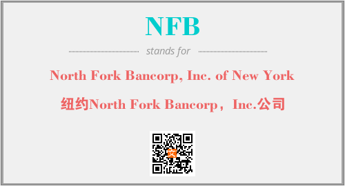 上述内容是“North Fork Bancorp, Inc. of New York”作为“NFB”的缩写,解释为“纽约North Fork Bancorp,Inc.公司”时的信息,以及英文缩略词NFB所代表的英文单词,其对应的中文拼音、详细解释以及在英文中的流行度和相关分类、应用领域及应用示例等。