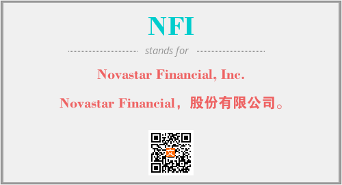 上述内容是“Novastar Financial, Inc.”作为“NFI”的缩写,解释为“Novastar Financial,股份有限公司。”时的信息,以及英文缩略词NFI所代表的英文单词,其对应的中文拼音、详细解释以及在英文中的流行度和相关分类、应用领域及应用示例等。