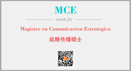 英文缩略词“MCE”经常作为“Magister en Comunicacion Estrategica”的英文缩写来使用,中文表示:“战略传播硕士”。本文将详细介绍英文缩写词MCE所代表英文单词,其对应的中文拼音、详细解释以及在英语中的流行度。此外,还有关于缩略词MCE的分类、应用领域及相关应用示例等。