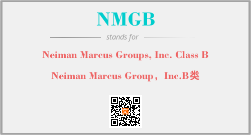 上述内容是“Neiman Marcus Groups, Inc. Class B”作为“NMGB”的缩写,解释为“Neiman Marcus Group,Inc.B类”时的信息,以及英文缩略词NMGB所代表的英文单词,其对应的中文拼音、详细解释以及在英文中的流行度和相关分类、应用领域及应用示例等。