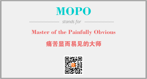 英文缩略词“MOPO”经常作为“Master of the Painfully Obvious”的英文缩写来使用,中文表示:“痛苦显而易见的大师”。本文将详细介绍英文缩写词MOPO所代表英文单词,其对应的中文拼音、详细解释以及在英语中的流行度。此外,还有关于缩略词MOPO的分类、应用领域及相关应用示例等。