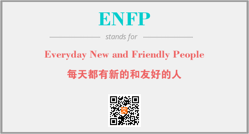 上述内容是“Everyday New and Friendly People”作为“ENFP”的缩写,解释为“每天都有新的和友好的人”时的信息,以及英文缩略词ENFP所代表的英文单词,其对应的中文拼音、详细解释以及在英文中的流行度和相关分类、应用领域及应用示例等。