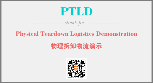 英文缩略词“PTLD”经常作为“Physical Teardown Logistics Demonstration”的英文缩写来使用,中文表示:“物理拆卸物流演示”。本文将详细介绍英文缩写词PTLD所代表英文单词,其对应的中文拼音、详细解释以及在英语中的流行度。此外,还有关于缩略词PTLD的分类、应用领域及相关应用示例等。