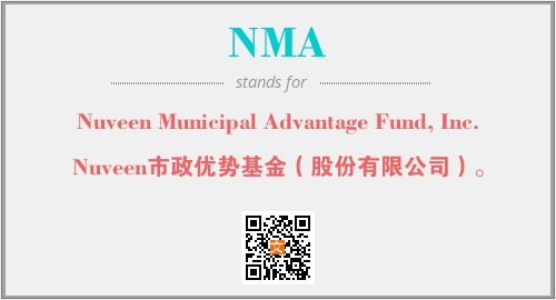 上述内容是“Nuveen Municipal Advantage Fund, Inc.”作为“NMA”的缩写,解释为“Nuveen市政优势基金(股份有限公司)。”时的信息,以及英文缩略词NMA所代表的英文单词,其对应的中文拼音、详细解释以及在英文中的流行度和相关分类、应用领域及应用示例等。