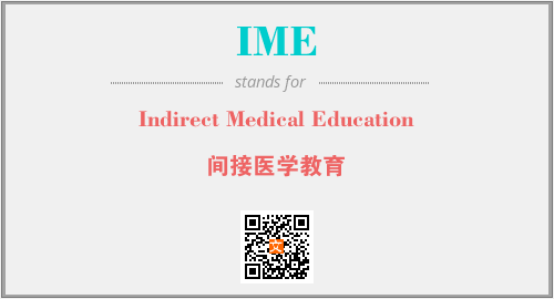 英文缩略词“IME”经常作为“Indirect Medical Education”的英文缩写来使用,中文表示:“间接医学教育”。本文将详细介绍英文缩写词IME所代表英文单词,其对应的中文拼音、详细解释以及在英语中的流行度。此外,还有关于缩略词IME的分类、应用领域及相关应用示例等。